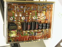 アストロ電子企画のAS-KT88は横倒しにして置かれていたので、裏側をのぞいてみると、それはそれは手の込んだ空中配線と高品位パーツぎっしりの内部構成に驚く。同社製品が高価なわけがはっきりと分かるカットである