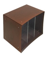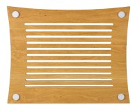 25mm厚のQ4Dサイズの棚板に11本のスリットを配置。仕上げには高級感溢れるナチュラルチェリーを、くみ上げには専用の32mm径アルミ削り出しポールをそれぞれ使用している。ポールの色はブラックとシルバーが選択可能。