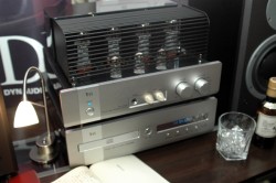 プレーヤーとアンプは、型番からお分かりのとおり、それぞれ「TRV-CD4SE」と「TRV-35SE」の特別モデルだ。トライオードと言えば赤い筐体が特徴だが、今回はブラックモデルとなり、より「大人」なイメージに仕上がっている。さらに、TRV-35SEBは、DM2/7との組み合わせ時に最高の音質となるよう、TRV-35SEの搭載真空管をスロバキアJJ社製「ECC803」に換装した。