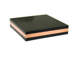 ドライカーボンで銅をサンドした本インシュレーターは、ひとつひとつ手作りで製作されている。カーボンと銅の接合面はドライカーボン内の樹脂のみで接着している。本製品を使用することにより、カーボン無垢の良さを残しつつ音像がはっきりとしステージングも拡がるという。