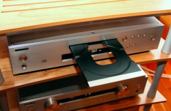 DIDRC回路を搭載したCDプレーヤー。メカには制振性に優れたアルミダイキャストトレイを採用し、これを真鍮製の脚で支持して振動を抑えている。
