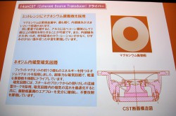 CSTドライバーの磁気回路にはネオジウムマグネットを採用。スチール削り出しの流線型ヨークが、磁気の流れを最適化するとともに、振動板裏側のエアフローを十分に確保し、不要反射を排除するとのことだ。