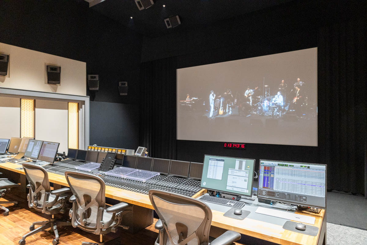 このライブのミックスを手がけるのは、レコーディングにも関わったWOWOWの蓮尾美沙希さんと沼田彰彦さん。WOWOWのスタジオである程度作り込んできてからこちらに持ち込んだというが、「低域の出方やドラムの滲みなど、いくつかさらに追い込みたいところが出てきたので、そこを微調整して臨場感をさらに追求しました」(蓮尾さん)と映画館環境に合わせた音質のこだわりについて教えてくれた。