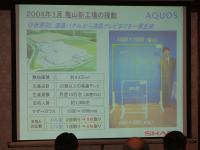 同社では、液晶テレビAQUOSなど4つの商品分野を中心に、オンリーワン商品による事業拡大へさらに力を入れている。中でも、筆頭にあげる液晶テレビAQUOSでは、年明け1月から三重の亀山新工場を稼動して生産体制の増強を図るとともに、「エクスペリエンス・マーケティング」と名付けた体験型のマーケティング手法に力を注ぐ。「物を売るのではなく、体験を売りましょうということです。『こんなに楽しくなるんですよ』という購入後の生活スタイルを、体験できる場所を設けて、説明していきたい」と、その狙いを説明した。有名ホテルなどの場所を借りた同主旨のイベント「アクオス・ラウンジ」が、すでに大きな成果をあげているという。