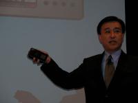 続いて、新しいVAIOシリーズのコンセプトを指導し、設計・デザインを担当した、ソニー(株)クリエイティブセンター コンセプトラボ/バリュークリエイションスタジオ 統括部長である戸塚恵一氏が登壇した。戸塚氏はVAIOシリーズの新しいコンセプトとして「やりたいことを際立たせる」という概念を提示し、その開発に置いては「原点に帰り、シンプルな製品をつくることを目指しました」と語った。ユーザー個人が「PCで楽しみたい、かなえたいエンタテインメントがシンプルに具現化できる」製品としてのVAIOを実現し、ユーザーが主体的に楽しみたいこと「Do VAIO=VAIOする」のコンセプトのもとに実現して欲しいという想いがこめられた製品であるという。新しい製品のデザインについては「前モデルのバイオの成功に経緯を払い、紫がかった黒いボディをコンセプトカラーにしている」という。