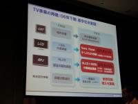 エレクトロニクス事業の復活において「テレビ事業の速やかな再建は不可欠」と語る中鉢氏は、「先に発表したBRAVIAの導入には、ソニーのテレビ事業における確実な復活の手応えを感じている」とした。「今後も急激な価格下落が起きることを前提」としながら、中鉢氏によって各デバイスごとにテレビ事業の再建計画が示された。