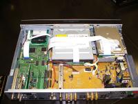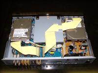 本機の内部を見ると、前モデルDV-DH400Tと較べて多機能になったにも関わらず、回路構成はスッキリと洗練されている。メイン基板はデジタル部とアナログ部が統合され1枚になり、チューナーやチップセットも統合されてオンボード化されている。PCのマザーボードのように整合性が高く完成度が高まった印象だ。前モデルより奥行で30mmの小型化が図られたが、必要な空間は確保され、発熱&静音対策もとられている。内部実装の冷却ファンはデジタル機としては珍しい1個で、作動音と作動時間が見直され、静音化が図られている。