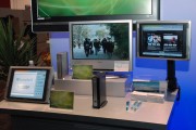 30GBのHDDを内蔵したDVカメラ「DCR-SR100」やDVD-R/-RW/+RWでの記録に対応したDVDビデオカメラ「DCR-DVD505」「DCR-DVD405」も参考出品。さらに“walkman”の愛称を初めて冠したSony Ericssonの携帯電話全5機種や、BD/DVD/CDを200枚収納できるVAIOのディスクチェンジャー、ロケーションフリーの据え置き型クライアント「LocationFree Box」も参考展示した。