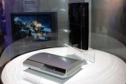 PS3ももちろん出展された。シルバーとブラックのモデルがケースの中に収められて展示されている。注目はそのすぐ横で行われているPS3によるBD-ROMの再生デモだ。1080pで出力された映画の高精細な映像を確認することができた。