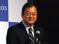 奥田隆司 本部長本日行われた新製品発表会には、取締役 AVシステム事業本部長の奥田隆司氏が出席。テレビ市場の動向について説明した。同氏はまず「2005年は、液晶テレビの需要がブラウン管テレビを超えたエポックメイキングな年となった」と語った。2005年の液晶テレビの需要は前年度比50%増の420万台となりブラウン管の360万台を上回った。トリノ五輪、W杯などが追い風となり、2006年は36%増の570万台を見込んでいるという。また、37型以上の大画面モデルの好調な推移もアピール。2005年10〜12月の出荷台数は前年同時期に比べ約3倍になったと説明し、「大画面も液晶」と自信を見せた。