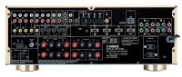 【SPEC】●定格出力:100W×7ch ●実用最大出力:140W×7ch ●入力端子:アナログ音声信号×8、8ch×1、デジタル音声信号(光)×4、デジタル音声信号(同軸)×2、コンポジット映像信号×5、S映像信号×5、コンポーネントビデオ×3、D4-ビデオ×3、ドック×1 ●出力端子:SP OUT×7ch 11端子、PRE OUT×8ch、REC OUT アナログ音声信号×3、デジタル音声信号 光×1、コンポジット映像信号×2、S映像信号×3、MONITOR OUTコンポジット映像信号×1、コンポーネントビデオ×1、D4-ビデオ×1 ●消費電力:300W ●外形寸法:435W×171H×421Dmm ●質量:12.3kg