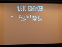 新たに搭載した“ミュージックエンハンサー”は、DAPなどで使用されるMP3やWMA、AACなどの圧縮音声の音質を向上させる技術。圧縮音楽が本来持っている帯域の高域成分から倍音を生成する「高域拡張処理」と、低域成分から超低域を生成する「低域強調処理」によって、伸びのある高音と迫力のある低音を生成し再生することが可能となっている。ミュージックエンハンサーモードには2ch/6(7)の2モードを用意しており、それぞれLOW/HIGHの2段階でその効き目を切り替えることが可能だ。なお、本技術は128kbpsの音声をベースにチューニングを行ったという。