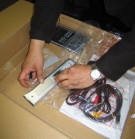 編集部に戻り、照れながらも、ひととおり会社の皆様に自慢 (一応、初物ですから・・・)。さて開梱です。