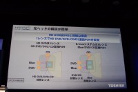 まず多層化技術については、「当初、BDは2層で50GBができると盛んに喧伝していたが、最近ではあまり聞かなくなった。0.1mmのコーティング層しか持たないBDより、0.6mmのHD DVDの方がはるかに多層化は簡単。BD陣営は50GB、100GB、200GBのディスクがいつ実用化するか説明する責任があるのではないか。HD DVDは現状で30GBの2層ディスクを実用化しており、現段階では30GBのHD DVDと25GBのBDでは、高容量なのはHD DVDということになる。技術的な意味でも、DVDに近い物理仕様で高容量記録を実現するため、BDよりはるかに多くの技術革新を行っている」と強く主張した。