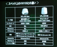 その他にもファンノイズは約22dbの静音設計が実現されたほか、「高圧水銀ランプ」の発熱量の低さを利用して本体のコンパクト化を実現している。新開発の「前面排気・背面吸気エアーダクト構造」により、設置場所の自由度も高まっている。HDMI入力は2系統を装備する。電気回路はVW100のサーキットの一部を、新開発のシングルチップに縮小して搭載することにより小型化を実現している。