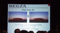 スピーチでは北米における大型テレビの市場が順調に伸びていることを解説したのちに、REGZAの2007年モデルに搭載される各種の高画質化技術を紹介。これは日本向けのモデルでも搭載されている機能に改良が加えられたことに加えて、「ClearFrame(Anti Blur)」という技術の解説が行われている。
