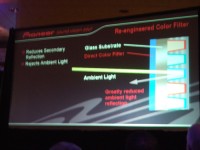 また、「ダイレクトカラーフィルター」にも改良が加えられるようだ。こちらも技術の詳細は明かされなかったが、二次反射を軽減する・映り込みを防ぐ・明るい部屋や量販店の店頭(米国では400ルクス前後のケースが多い)でも見映えするようにコントラストを改善するなどの効果があがったという。ある程度暗い部屋であれば美しい映像が描けるというのがプラズマテレビが一般的なイメージだが、明るく採光性の高いリビングでも楽しめるものとして、よりアピールすることができるようになるという。