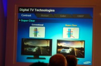 同社液晶テレビの新技術については、バイス・プレジデントのDr.David Steel氏から説明があった。同氏によると、サムスンでは薄型テレビの画質を高めるため、様々な新技術を開発しているとのこと。まずコントラストを高める取り組みでは、「Super Clear」技術や、100,000対1というコントラストを実現する「Local Dimming」、さらに明所コントラスト550対1を実現する「Ultra Filter Bright」などを開発した。