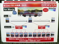 J5000シリーズの2機種は、通常60コマ/秒の映像を120コマ/秒にして表示する倍速表示機能を新たに搭載。各コマ間に、新たに生成したコマを挟み込む独自技術“モーションフロー”により、スポーツなどの素早い動きにおける残像感を低減し、なめらかな動画再生を実現している。また、独自のアルゴリズムにより縦・横・斜めの全方向の動きに対応するという。