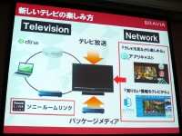 全モデル共通で、ソニーが運営する独自のインターネットコンテンツを閲覧可能な“アプリキャスト”機能を新たに搭載した。ブロードバンドに接続し、リモコンを使って簡単に情報検索やショッピングを楽しめる機能で、テレビ画面を表示したまま利用できる。コンテンツは3月末時点でAmazon.co.jp、楽天(株)、ソネットエンタテインメント(株)、ヤフー(株)が提供する予定となっている。