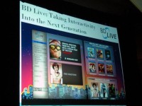 次にソニーピクチャーズ・ホームエンターテインメント社長のDavid Bishop氏が登場し、PS3がBD市場の拡大に貢献していることを力説。PS3はたんなるゲーム機としてではなく、BDプレーヤーとして受け入れられていると説明した。その後でBD Profile1.1について実例(Evil Resident)を挙げながら紹介が行われ、ピクチャー・イン・ピクチャー機能、予告編のダウンロードやオンラインゲームなどが可能になるBD Liveの多彩な機能の一端が紹介された。なお、BD Liveについてはコンベンション会場のBDAブースで実演が行われており、大きな注目集めている。