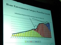 続いて20世紀フォックス・ホームエンターテイメント副社長のDanny Kaye氏がBD産業の概要を紹介。特にプレーヤー市場が2008年に向けて著しい伸びを見せており、アーリーアダプター層が支持する段階から次の段階へとステップアップが起こっているとした。さらに、VHSからDVDへメディアの世代交代が起きた2000年前後の状況と現在の状況を比較し、旧世代メディアの伸びの鈍化と新世代メディアの急激な伸長という構図が再びDVDとBDに間に起こっていることを指摘した。同氏は2008年末までに市場に浸透するBD再生機器の台数を1000万台と予測している。