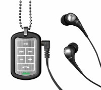 本機は、携帯音楽プレーヤーの音楽再生や、携帯電話の通話がハンズフリーでできるヘッドセット。“Dog Tagスタイル”を採用し、首から下げて使用することができる。
