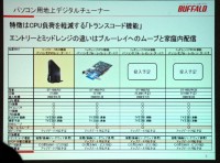中村氏によると、パソコン用地デジチューナーを今年度中にさらに2製品投入するという。7月に発売予定の「DT-H50/U2」はUSB対応の外付けモデルで、8月発売予定の「DT-H50/PCIE」はPCIEバス対応の内蔵モデル。両製品共に、トランスコード機能、BDへのムーブ機能や、アップデートによるDTCP-IP配信、ダビング10に対応する。