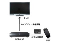 購入当初、AV機能の使い道をあれこれと考えていたとき、ソニーのBDレコーダー「BDZ-X90」をテストする機会を得た。BDZ-X90やBDZ-A70など、ソニーのBDレコーダーには、録画番組をSCEのゲーム機PSP用の動画として保存する「おでかけ転送」機能がある。レコーダーで作成した動画はメモリースティックに保存して、PSPで視聴したり、PS3に保存することもできるのだ。これは多少手間はかかるものの、けっこう使える楽しみ方だと筆者は考えている。