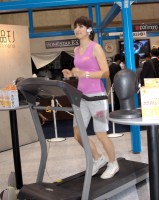 セガトイズのブースに入ると、ウォーキングマシンの上でランニングする女性の姿が目に飛び込んできた。よく見ると、耳にはヘッドセットが装着されている。