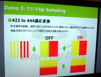 また、色の表現能力を高めるためのクロマアップサンプリング処理では、4:2:2信号から4:4:4信号への変換の歳、色の境界を認識し、境界で色滲みが出ないよう、映像に応じて適応的なクロマ補間を行う。垂直方向にについては、クロマエンハンサー処理によって同等の効果を得ている。