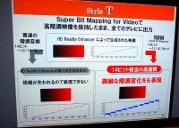 また、SBM(Super Bit Mapping)技術は、人間の視覚特性とディスプレイの特性を利用し、人間の視覚感度の低い高周波帯域に量子化誤差を拡散させ、ノイズ感を出さずに限られたビット数で高い階調表現を実現するというもの。HD Reality Enhanceによって生成された階調を保持しながら、12/10/8ビットの階調に変換する。