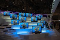 会場のメインエントランスには、先日発表されたばかりの超解像技術を搭載した“REGZA”を初めとする液晶テレビの各ラインナップが展示されている。特に超解像技術“レゾリューションプラス”については、フラグシップであるZH7000/Z7000シリーズのデモ機を使った特設展示ブースを設けるなど、力の入った紹介が行われている。