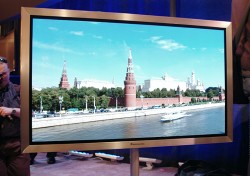 米国時間1月7日に開催されたパナソニックのプレスカンファレンスでは、スピーチの最後に薄さ8.8mmのフルHDプラズマパネルを搭載した50V型モデルの試作機が登場し、会場をあっと驚かせた。