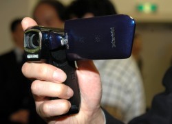 記録フォーマットはMPEG-4 AVC/H.264。記録方式はSDカードで32GBまでのSDHCメモリーカードに対応するほか、 約40MBのメモリーも内蔵。レンズは5倍ズームレンズを搭載している。