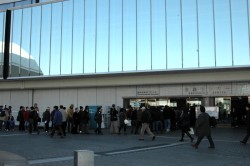 会場の外にまで続く列横浜に会場を移し4回目となる今年のA&Vフェスタ。会場は展示エリア、視聴エリア、イベントの3つのエリアで構成される。各社が力を入れる展示ブースはもちろん、趣向を凝らした体験イベントにも注目したい。最大の目玉といってもよいのが「体験!! ライブレコーディング」(関連ニュース)と題したジャズと民族音楽のライブを無料で聴くことができる生録イベントだ。21日、22日の両日で開催され、3日間を通しイベントの協賛メーカーの展示が行われる。