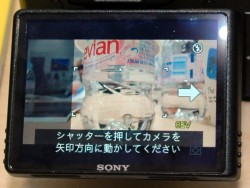 シャッターを押してからカメラを動かすことでパノラマ撮影が可能な「スイングパノラマ」機能を搭載。シャッターボタンを押してから約3秒間カメラを水平、もしくは垂直方向に動かし、その間に10fpsの高速連射で撮影した映像を、ジャイロ情報を元につなぎ合わせてパノラマ写真を生成する。シャッターを押してから画像生成までの一連の作業にかかる時間は約5秒ほどだ。