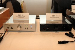 プロオーディオ製品を手掛けるインターシティは、同社のコンシューマー向け製品であるヘッドホンアンプを出展している。中でも注目は6月に発売する新製品「MSA-1」「MSA-1S」。デュアルモノラル構成を採用した従来機「MBA-1/1S」がバランス接続用だったのに対し、本機は基本性能を継承しながらアンバランス接続に改良したモデル。「ヘッドホン含むスピーカーやプレーヤーの性能を最大限に引き出すため、アンプ自体は無色透明の音を目指している」(説明員)という。