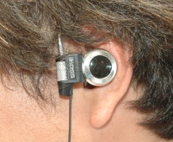 まずは米KOSSの6月頃の発売を予定している新製品から紹介しよう。ユニークな耳掛け方式のダイナミック型イヤホン「KDE/250」は、低域をカバーする20mmのトランスデューサーと中域以上をカバーする13mmのトランスデューサーを搭載し、周波数帯域は40〜20kHzとなる。耳掛け部は脱着式で、耳の大きさにあわせて3サイズの長さを用意している。価格はまだ未定とのことだが、3万円前後になる見込み。