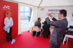 別途設けられた特設会場では、ビクターのインクジェットプリンター対応ディスクの品質体験コーナーも出展されている。来場者に写真画質の精細な盤面プリントが楽しめるメディアの実力を紹介。会場で撮影した来場者のポートレートをディスクに印刷してプレゼントするサービスも人気を集めている。