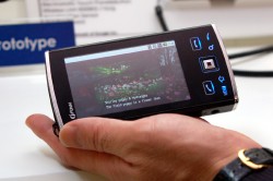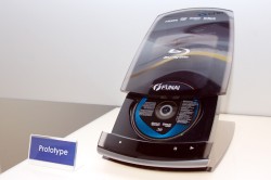 そのほか、iPod内の映像をBDプレーヤーで1080pにアップスケールし、HDMIから出力するシステムも展示。今後BDプレーヤーのi/pスケーラーの性能を向上させることで、画質のクオリティアップを目指すという。さらにBDプレーヤーのフューチャーモデルもモックアップで登場。コンセプトは、リビングのテーブル上で操作できるBDプレーヤー。wirelessHDMIに対応させ、テレビから話しても使えるような仕様を検討しているとのことだ。