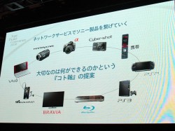 また、製品のネットワーク化については「2010年にソニー製品の90%をネットワーク対応のモデルにする」としたCEOのストリンガー氏の宣言についても言及。「ただし、ネット接続への対応は“入場券”にすぎない。重要なのは、そこで何ができるのかということだ」と栗田氏は言葉を続け、何ができるかという点を「コト軸」と名付けて様々な提案を行っていくと明かした。