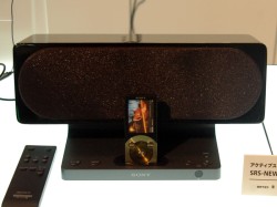 オーディオ関連機器のコーナーには、“Walkman”やヘッドホン、関連アクセサリーなどがズラリと並ぶ。その中には、Walkman用ドックを搭載したHDDコンポやアクティブスピーカーシステムも参考出品されていた。