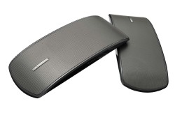 2ウェイサテライトスピーカー「TS-STH1000」は、振動板の両サイドに配置したボイスコイルの水平方向の振動を新開発のリンク機構を介して垂直方向の振動に変換する方式「HVT(Horizontal-Vertical Transforming)方式」を世界で初めて採用。これにより、高音質と薄型化を両立させた。トゥイーター部には、新開発の大口径3.3cmソフトドームダイアフラムを採用する。