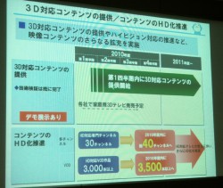コンテンツの拡充について、坂東氏は「夏頃に3Dコンテンツの提供を予定している。どのようなコンテンツを用意すべきかなど慎重に進めていきたいので、まずはトライアルで開始する」という。サービスに関する具体的な内容は未定だが、同社社員の話では「IP放送でのサイド・バイ・サイド方式による3D映像の提供は技術的には可能だが、実際にサービスを行うかどうかは検討中。当面はVODでの配信を予定している」とのことだ。