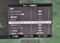 映像メニューの詳細設定からは、4種類設けられた倍速表示のモードを切り替えられる。「標準」「強調」はコマ間のフレーム補間を行い、動画のブレを軽減して滑らかに映像を再生できるモード。「5-5/4-4」モードでは補間フレームをつくらずに、同じフレームを繰り返して24Hz表示を行う。フィルムソースをオリジナルに近い質感で再生するのに適したモードだ。「遅延軽減」モードは補間フレームをつくらず、直前と同じフレームを繰り返して表示する。映像表示時の遅延を最小で0.5フレームに抑えることができ、ゲームなどのコンテンツを楽しむのに適している。