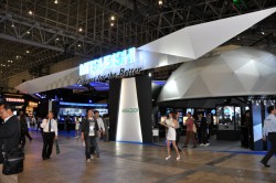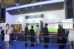 三菱電機(株)は、“REAL 3D”をブース前面に大きく掲げ、視聴デモとともにアピールを行っている。