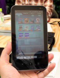 読書端末として、現時点で本機で表示できるのはXMDF/TXT/PDF形式のみ。ただし今後、TSUTAYA GALAPAGOSストアでの取り扱いフォーマット拡充に合わせ、対応フォーマットが拡充される可能もある。