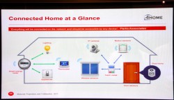 そのほか、約1年前に買収して傘下に収めた4HOMEのホームモニタリング/ホームコントロールシステムについてもデモを行った。4HOMEの技術を使うと、Androidタブレットなどを使って、外出先から家庭内のモニタリングや照明など家電機器の操作が行える。