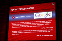 既報の通り、Googleは8月16日、125億ドルで米モトローラ・モビリティ・インクを買収する意向を表明した。キーフ氏も「Googleがモトローラ・モビリティを買収する意図があるということで、買収処理が完了したわけではない。完了の見込みは今年末、もしくは年初になるだろう」と述べた。